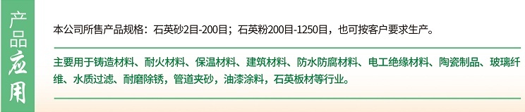 安徽晶茂石英科技有限公司是專業(yè)從事各種粒度型號(hào)砂、石英粉、烘干砂的生產(chǎn)加工銷售為一體化的自動(dòng)化先進(jìn)企業(yè)。2018年響應(yīng)政府號(hào)召走可持續(xù)發(fā)展之路,企業(yè)以鳳陽(yáng)縣石英資源的優(yōu)良品質(zhì)為依托,投入資金1億元,在大廟英產(chǎn)業(yè)園新建(20條型號(hào)砂生產(chǎn)線、2條烘干砂生產(chǎn)線、2條石英粉生產(chǎn)線)年產(chǎn)60萬(wàn)噸石英砂生產(chǎn)項(xiàng)目。產(chǎn)品以水洗烘干工藝為基礎(chǔ),含鐵低、雜質(zhì)少、色澤好、含硅高為特點(diǎn),所售產(chǎn)品深受各行業(yè)客戶一致好評(píng)。公司秉承品質(zhì)、誠(chéng)信共嬴的經(jīng)營(yíng)理念歡迎各界朋友來(lái)電來(lái)廠考察指導(dǎo)、攜手并進(jìn)共謀發(fā)展之路!