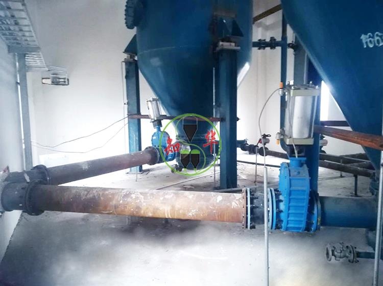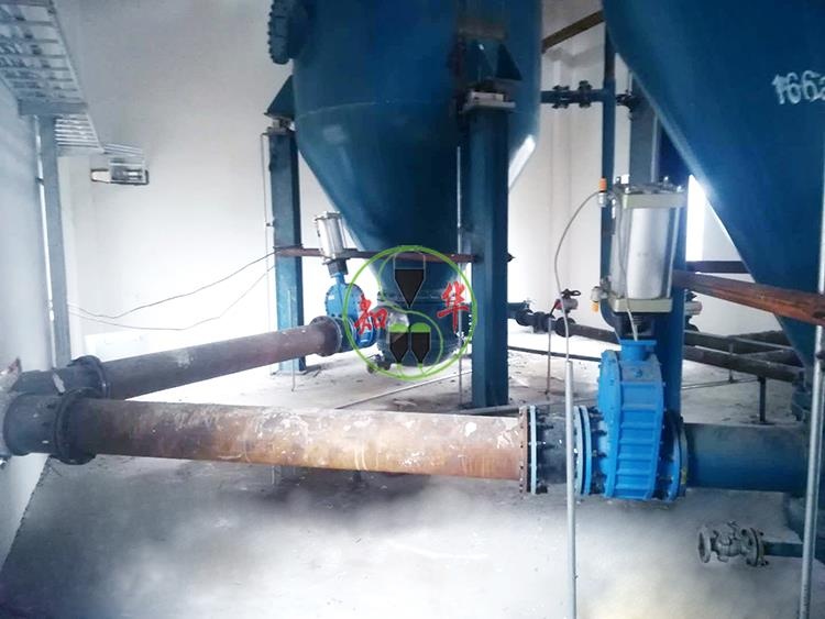 湖州興浦南方水泥有限公司擁有年產(chǎn)360萬t/年水泥粉磨生產(chǎn)線,同時(shí)擁有自己的內(nèi)河碼頭,通過散裝船運(yùn)來的礦粉通過氣力輸送泵、管道輸送至水泥廠內(nèi)的礦粉庫(kù),通過知華設(shè)計(jì),整個(gè)輸送過程中實(shí)現(xiàn)了礦粉計(jì)量功能,計(jì)量精度3‰~5‰。該項(xiàng)目輸送水平距離210m,輸送高度45m,輸送量150t/h。