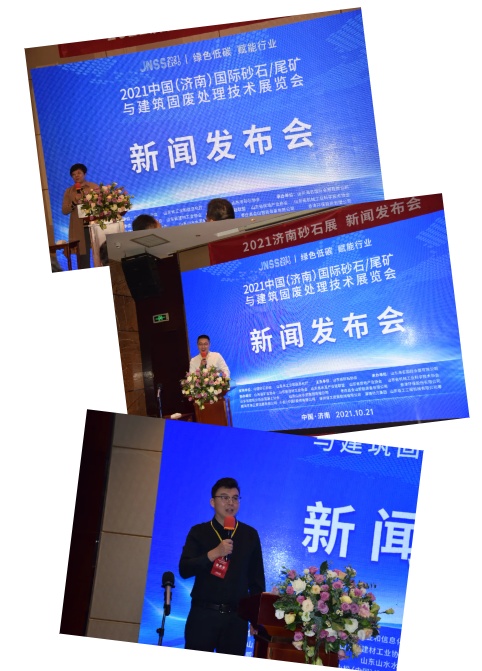10月21日上午,2021濟(jì)南砂石展新聞發(fā)布會(huì)在濟(jì)南舜和國(guó)際酒店成功召開(kāi)?,F(xiàn)場(chǎng)發(fā)布:由中國(guó)砂石協(xié)會(huì)支持,山東省砂石行業(yè)協(xié)會(huì)主辦、山東海名國(guó)際會(huì)展有限公司承辦的“2021年中國(guó)(濟(jì)南)砂石/尾礦與建筑固廢處理技術(shù)展覽會(huì)”將于2021年12月10-12日,在山東國(guó)際會(huì)展中心盛大召開(kāi),將成為中國(guó)砂石行業(yè)集展覽、交流、學(xué)習(xí)、采購(gòu)等多種功能于一體的全新商務(wù)平臺(tái)。