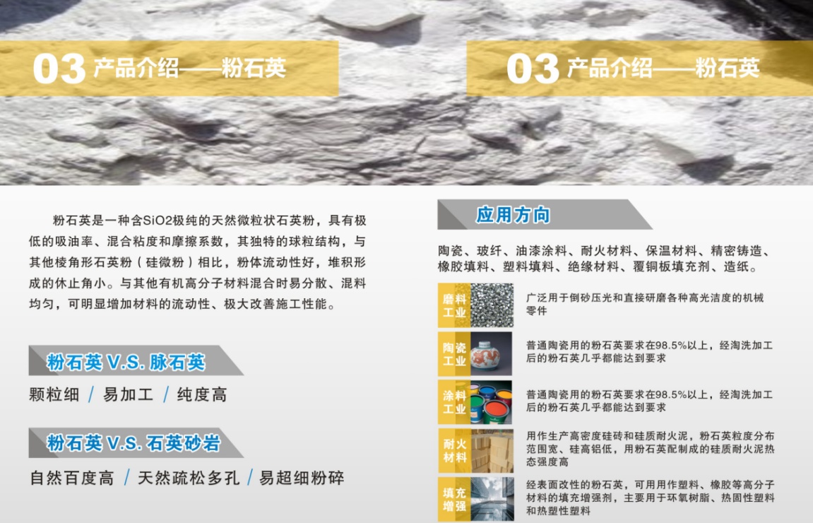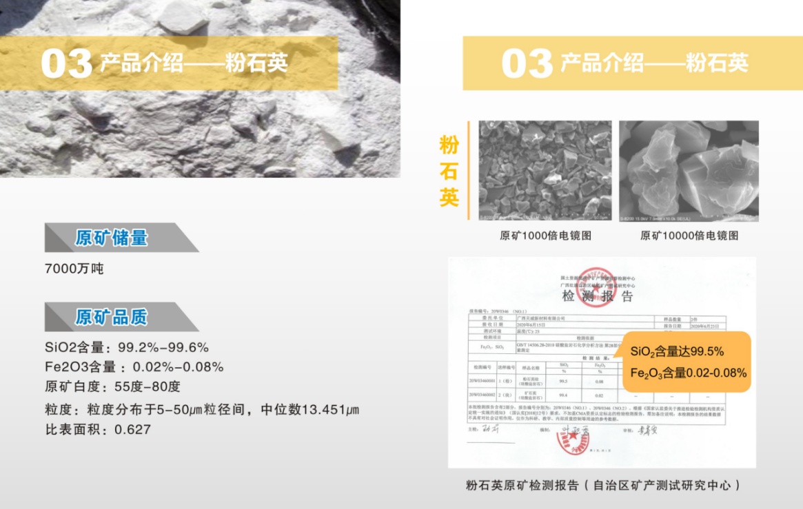 公司與廣西大學(xué)無(wú)機(jī)非金屬材料研究所等機(jī)構(gòu)建立了穩(wěn)定的產(chǎn)學(xué)研合作。正在運(yùn)營(yíng)的粉石英開(kāi)采和深加工項(xiàng)目為河池市十大重點(diǎn)項(xiàng)目之一,是2018-2019全國(guó)重點(diǎn)粉石英勘探項(xiàng)目之一。