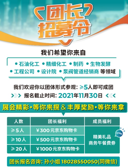 對于來自石油化工、精細化工、制藥、生物發(fā)酵、工程公司、設計院、泵閥管道經(jīng)銷商等領域的觀展團,還可以享受組委會準備的京東購物卡大禮包,觀戰(zhàn)團規(guī)模越大,獎勵禮包越豐厚。