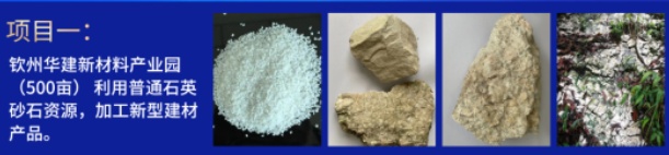 項目一:欽州華建新材料產(chǎn)業(yè)園(450畝) 利用普通石英砂石資源,加工新型建材產(chǎn)品