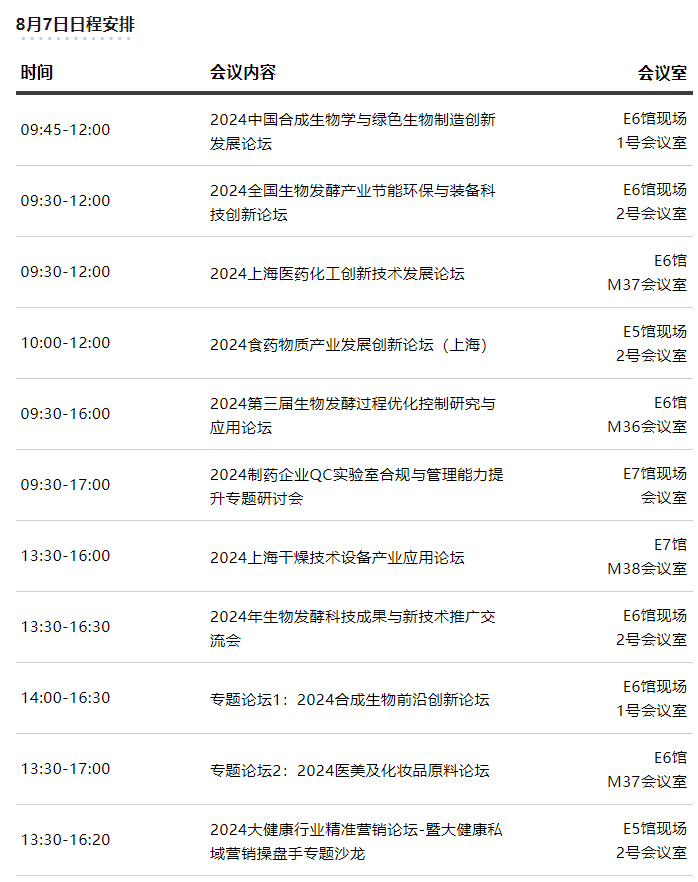 2024上海生物發(fā)酵系列展將于8月7-9日在上海新國際博覽中心隆重召開,40000平方米展示面積,800余家參展企業(yè),30多場高質(zhì)量論壇活動,同期舉辦“合成生物與綠色制造展”、“生物化工展”、“生物醫(yī)藥與技術設備展”、“生物工程與生化儀器、實驗室設備展”、“酵素展”、“益生產(chǎn)品展”,多展聯(lián)動。展品覆蓋、生物工程、發(fā)酵工程、細胞工程、蛋白工程、醫(yī)藥、生物醫(yī)藥(抗生素、疫苗等)、生物飼料、生物農(nóng)藥、生物肥料、生物化工、發(fā)酵產(chǎn)品(氨基酸及有機酸、淀粉及淀粉糖、酵母及衍生物、酶制劑、發(fā)酵功能制品)、食品飲料、酒等生產(chǎn)加工所需的各種新產(chǎn)品、新技術、新裝備、新工藝,打造集“展示、商貿(mào)、學習、交流”為一體的全產(chǎn)業(yè)鏈,致力于生物技術產(chǎn)業(yè)智能制造一站式解決方案。