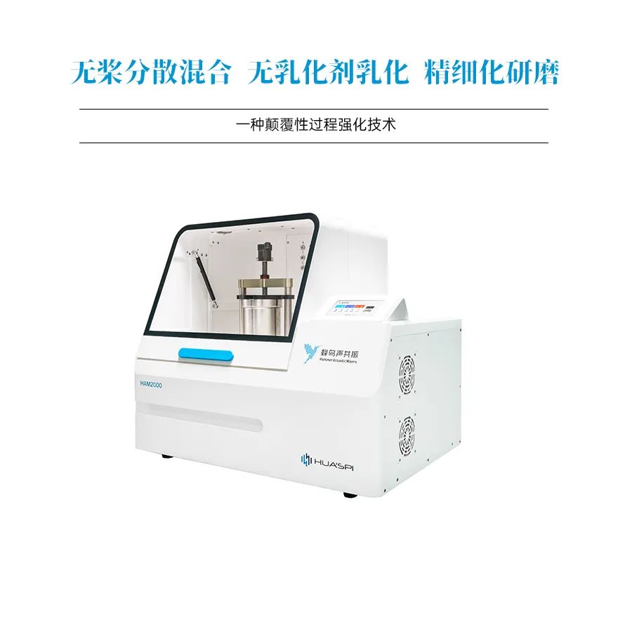 HAM 2000桌面式實驗室型蜂鳥聲共振,適用于實驗室研究及小體量生產(chǎn)使用,單次處理能力可以達到約2000毫升,設(shè)備可定制化設(shè)計在應(yīng)用范圍內(nèi)可無需考量介質(zhì)條件因素,對于物料選擇持開放性,具體需根據(jù)樣品和工藝確定。