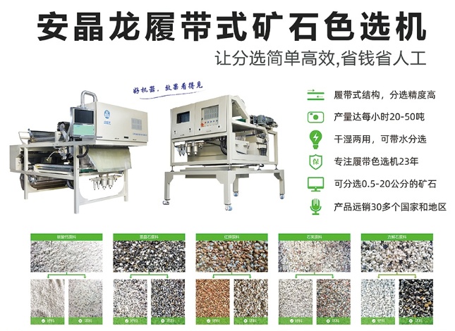 公司自主研發(fā)生產(chǎn)的“安晶龍”牌(Angelon)履帶式智能彩色色選機(jī)已成為國(guó)內(nèi)技術(shù)的領(lǐng)先者。廣泛運(yùn)用于礦石資源、食品、中藥材、再生資源等眾多領(lǐng)域,色選效果也遠(yuǎn)超國(guó)內(nèi)外同類產(chǎn)品。安晶龍履帶式色選機(jī)銷往全世界30多個(gè)國(guó)家和地區(qū),受到國(guó)內(nèi)外客戶的青睞。