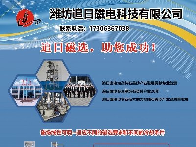 中國粉體網(wǎng)于將于2025年3月27號在江蘇東海舉辦“2025第三屆集成電路及光伏用高純石英材料產(chǎn)業(yè)發(fā)展大會”,濰坊追日磁電科技有限公司邀您一同參加。展位號:B1公司介紹濰坊追日磁電科技有限公司是一家專