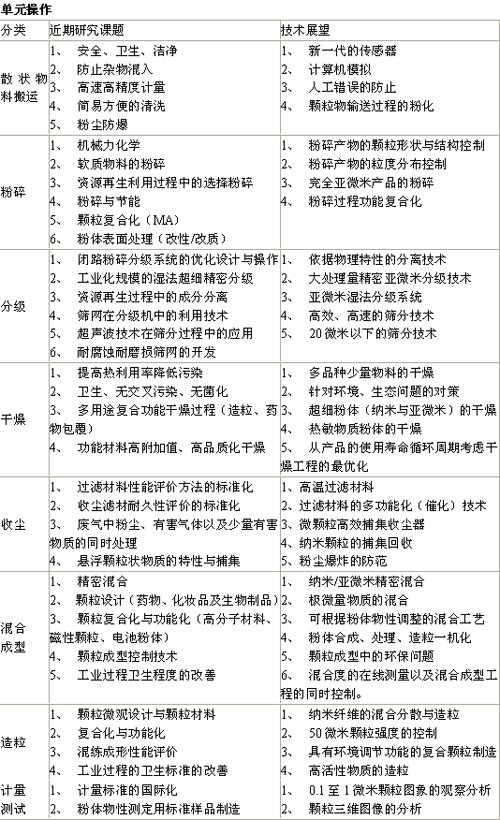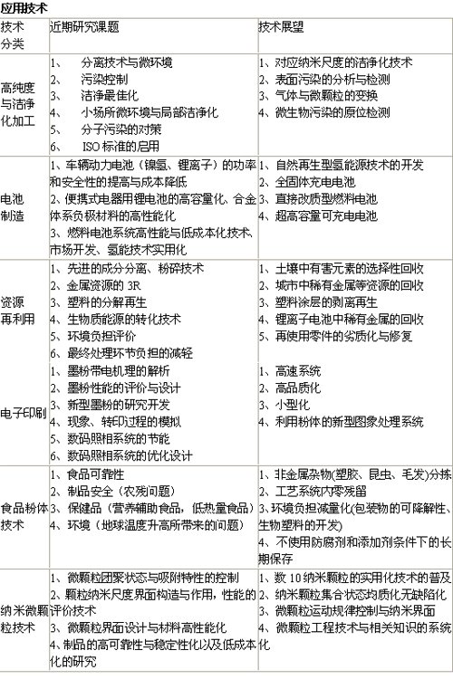參考日本粉體協(xié)會在2008東京國際粉體展覽會上散發(fā)的資料,對粉體技術(shù)的內(nèi)容和工程化目標(biāo)進行分析如下。