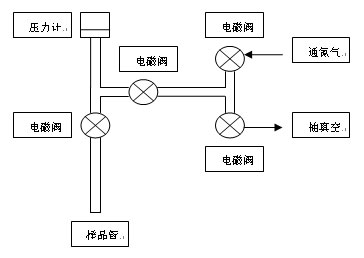 靜態(tài)法有重量法和容量法兩種,以后者為主,靜態(tài)容量法氮吸附儀是一個真空系統(tǒng),其核心部分可示意如下圖