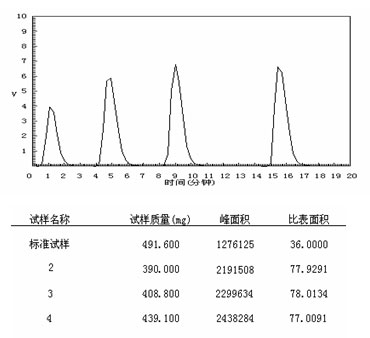 這是最簡捷、最快速的比表面測量儀器,每次測定一個標準樣品和三個被測樣品,總計需時僅20分鐘;對于超細粉體工業(yè)生產(chǎn)的比表面在線檢測及質量監(jiān)控是一種較為理想的儀器,該機典型的測試結果如上圖所示,靜態(tài)法儀器不具備此種功能。