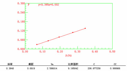 直接對比法測”定比表面積有一個局限性,即被測樣品與標準樣品的吸附特性必須一致,否則測定的精確性會受到影響。BET比表面的測定方法則沒有上述的局限性,被國際上廣泛采用。 JW-004 BET比表面儀是北京精微高博科學技術有限公司按照多層吸附理論設計并研發(fā)成功的新一代氮吸附儀,該設備對動態(tài)氮吸附儀有了重大的發(fā)展,在BET比表面的測定方面實現(xiàn)了與國際的接軌,它標志著我國比表面測試儀進入了一個新的里程。該機采用定量氣體標定法,測出不同氮分壓下的氮吸附量,通過BET公式的運算獲得比表面積,同機也具有用直接對比法快速測得比表面值的功能,因此也稱為兩用型氮吸附儀,是教學、科研、生產(chǎn)均適宜的測定比表面的設備,這類設備已成為國內最受歡迎的氮吸附儀。其典型的測試結果如下圖所示。