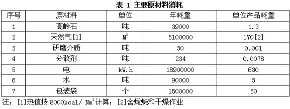 生產(chǎn)線裝機(jī)容量約4000kW。原材料消耗見表