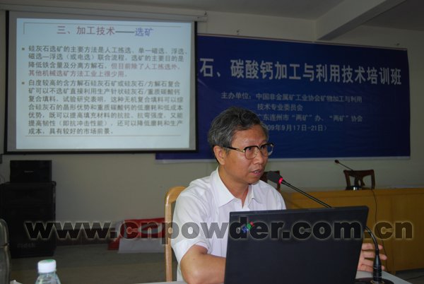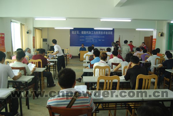 由中國非金屬礦工業(yè)協(xié)會礦物加工利用專業(yè)委員主辦,連州碳酸鈣硅灰石行業(yè)協(xié)會、連州市碳酸鈣硅灰石行業(yè)管理辦公室協(xié)辦的“碳酸鈣、硅灰石加工與利用技術(shù)培訓(xùn)班”于2009年9月17日-19日在廣東連州市舉辦。近50余家兩礦深加工企業(yè)的負責(zé)人及相關(guān)技術(shù)人員參加了本次培訓(xùn)班。