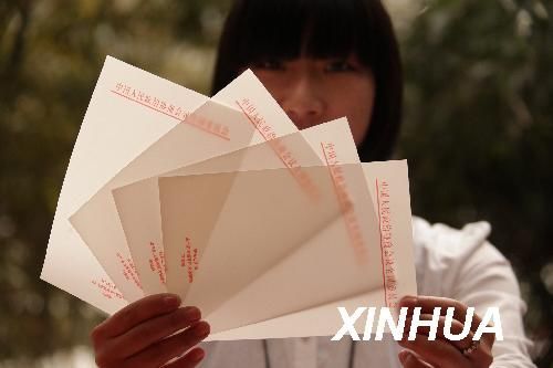 3月2日,一名工作人員在政協(xié)委員駐地北京國(guó)際飯店展示“環(huán)保石頭紙”。主要原料為碳酸鈣,可降解的“環(huán)保石頭紙”以便簽、文件袋等形式首次出現(xiàn)在全國(guó)兩會(huì)。