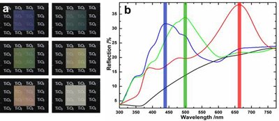 目前二氧化鈦納米管在光子學(xué)方面的應(yīng)用研究還很少。陳險峰教授課題組在近年來對二氧化鈦納米管陣列結(jié)構(gòu)的制備進(jìn)行大量研究的基礎(chǔ)上,進(jìn)一步探索了這種材料在光電子學(xué)方面的應(yīng)用,獲得了縱向周期結(jié)構(gòu)二氧化鈦納米管,首次獲得了彩色的二氧化鈦納米管薄膜,這種薄膜顯示了分布于整個可見光波段的光子禁帶。在納米尺度上實(shí)現(xiàn)對光子和光電子的調(diào)控對各種功能器件的實(shí)現(xiàn)具有重要意義,研究小組提出的這種新型的納米結(jié)構(gòu)材料可以和二氧化鈦本身的特性相結(jié)合,在光電子學(xué)方面具有重要的應(yīng)用前景。