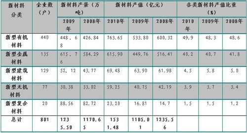 2010年,全市規(guī)模以上材料生產(chǎn)企業(yè)工業(yè)總產(chǎn)值約為6119.41億元,其中新材料產(chǎn)值已占到全市規(guī)模以上材料生產(chǎn)企業(yè)工業(yè)總產(chǎn)值的兩成以上。