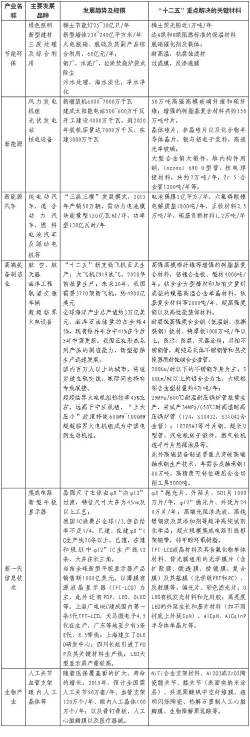 重點(diǎn)發(fā)展為戰(zhàn)略性產(chǎn)業(yè)支撐的新材料——加快為航空、航天、核電等國(guó)家戰(zhàn)略產(chǎn)業(yè)配套的高強(qiáng)高模碳纖維、高溫合金、鈦合金等新材料,為新一代信息技術(shù)配套的大尺寸拋光硅片、外延片、光學(xué)膜片及其基膜材料和超凈高純電子化學(xué)品。