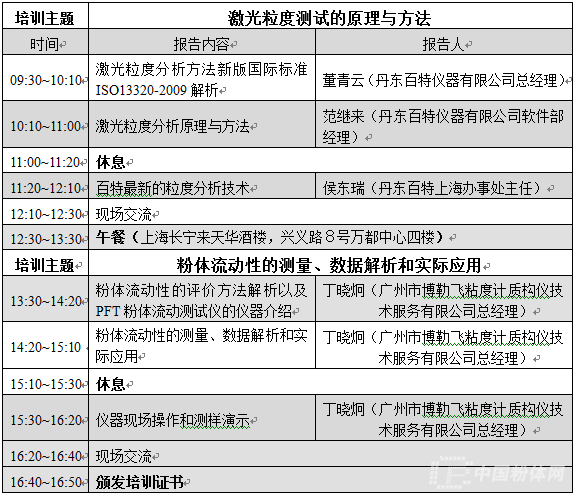 粘度計(jì)質(zhì)構(gòu)儀技術(shù)服務(wù)有限公司擬定于2014年10月15日在上海國(guó)際展覽中心舉辦“2014年顆粒測(cè)試與表征技術(shù)培訓(xùn)班”,同期“2014 中國(guó)國(guó)際粉體加工/散料輸送展覽會(huì)”和“2014 粉體行業(yè)熱點(diǎn)及應(yīng)用技術(shù)研討會(huì)”將于2014 年10 月14-16 日舉辦。有關(guān)培訓(xùn)班詳情如下: