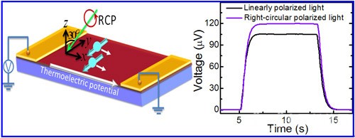 圖2 拓撲絕緣體Bi2Se3中圓偏振光增強的光熱電效應(yīng) (Nano Letters DOI: 10.1021/nl501276e,2014)