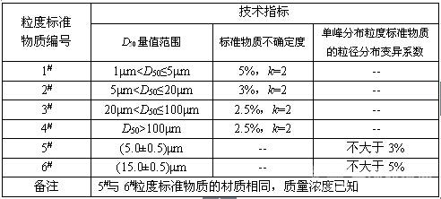 表 校準(zhǔn)用粒度標(biāo)準(zhǔn)物質(zhì)技術(shù)指標(biāo)