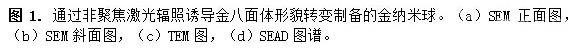單分散球形金納米顆粒,由于其獨(dú)特的圓球形形貌和尺寸調(diào)控的表面等離子共振(LSPR)性能,倍受研究者的關(guān)注,可廣泛應(yīng)用于化工、材料和生物等領(lǐng)域。然而,在溶液中合成金納米顆粒,由于金納米晶各個(gè)晶面能量不同,所以在生長(zhǎng)過程具有各向異性的特點(diǎn),易于生長(zhǎng)出非球形、有規(guī)則形狀的納米顆粒,這些顆粒會(huì)具有多個(gè)棱面和頂角。目前,按傳統(tǒng)方法獲得大量、高單分散、結(jié)晶性好的金球形納米顆粒仍是一個(gè)挑戰(zhàn)。在諸多傳統(tǒng)化學(xué)和物理制備方法中,獲得的金納米球質(zhì)量參差不齊,或其操作過程復(fù)雜、重復(fù)性差等,限制了其進(jìn)一步的應(yīng)用;為此,發(fā)展快速、簡(jiǎn)便而高效的新制備技術(shù)顯得尤為重要。