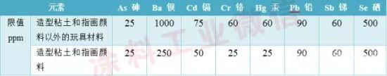 表1 EN71-3中的有害物質(zhì)限值(見上圖)