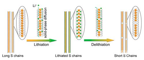 圖1 鏈狀硫分子在鋰硫電池中鋰化-去鋰化過程示意圖