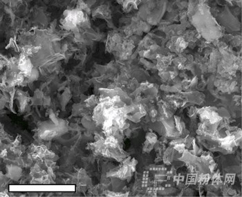 賴斯大學(xué)的掃描電子顯微鏡顯示的鈷浸漬金屬氧化物-激光誘導(dǎo)制備石墨烯。這種材料是替代鉑質(zhì)或其他貴金屬作為燃料電池催化劑的理想材料。圖片比例= 10微米。圖片來源:萊斯大學(xué)。