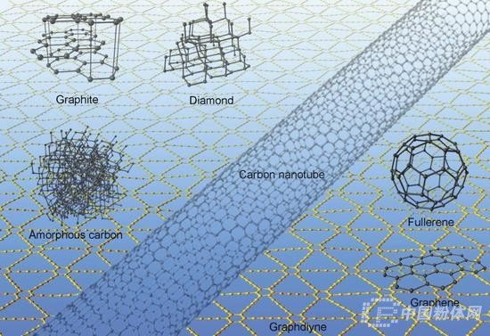合成、分離新的不同維數(shù)碳同素異形體是過(guò)去二三十年研究的焦點(diǎn),科學(xué)家們先后發(fā)現(xiàn)了三維富勒烯、一維碳納米管和二維石墨烯等新的碳同素異形體,這些材料均成為了國(guó)際學(xué)術(shù)研究的前沿和熱點(diǎn)。碳材料可廣泛應(yīng)用于鋰離子電池、超級(jí)電容器、傳感器、太陽(yáng)能電池、催化載體以及納微電子器件等領(lǐng)域研究。碳具有sp3、sp2和sp三種雜化態(tài),通過(guò)不同雜化態(tài)可以形成多種碳的同素異形體,如:通過(guò)sp3雜化可以形成金剛石,通過(guò)sp3與sp2雜化則可以形成碳納米管、富勒烯和石墨烯等。1996年化學(xué)諾貝爾獎(jiǎng)被授予了3位富勒烯的發(fā)現(xiàn)者,2010年英國(guó)曼徹斯特大學(xué)的安德烈?海姆和康斯坦丁?諾沃肖洛夫由于在二維材料石墨烯方面開(kāi)創(chuàng)性的研究被授予了諾貝爾物理獎(jiǎng),使得碳材料的研究進(jìn)入了一個(gè)新的階段,同時(shí)也激起了科學(xué)家們對(duì)新型碳的同素異形體的研究的熱忱和興趣。