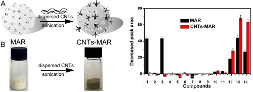 碳納米管增強大孔吸附樹脂萃取材料的制備示意圖和天然化合物萃取選擇性