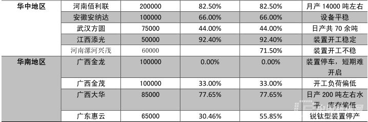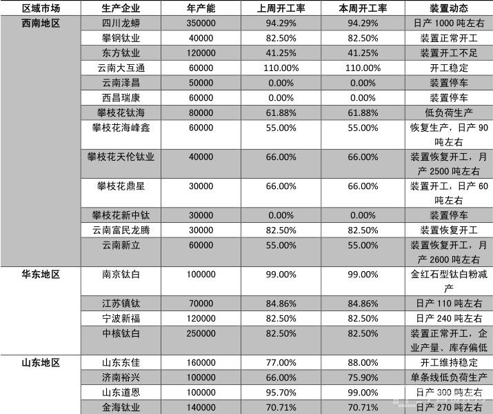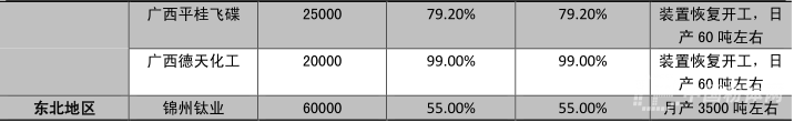 鈦白粉產(chǎn)能情況