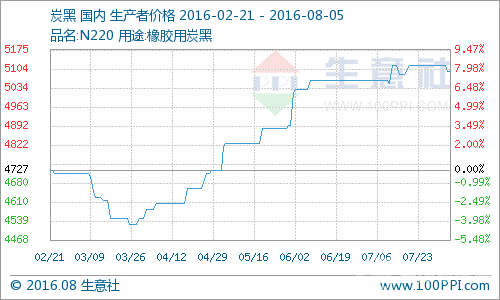 根據(jù)生意社數(shù)據(jù)監(jiān)測(cè)顯示炭黑N220型號(hào)價(jià)格走勢(shì)如下: