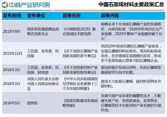 《中國制造2025》提出:明確要求高度關(guān)注顛覆性新材料對(duì)傳統(tǒng)材料的影響,做好超導(dǎo)材料、納米材料、石墨烯、生物基材料等戰(zhàn)略前沿材料提前布局和研制,加快基礎(chǔ)材料升級(jí)換代!<中國制造2025>重點(diǎn)領(lǐng)域技術(shù)路線圖(2015年版)》中稱,石墨烯產(chǎn)業(yè)“2020年形成百億產(chǎn)業(yè)規(guī)模,2025年整體產(chǎn)業(yè)規(guī)模突破千億”的發(fā)展目標(biāo)。