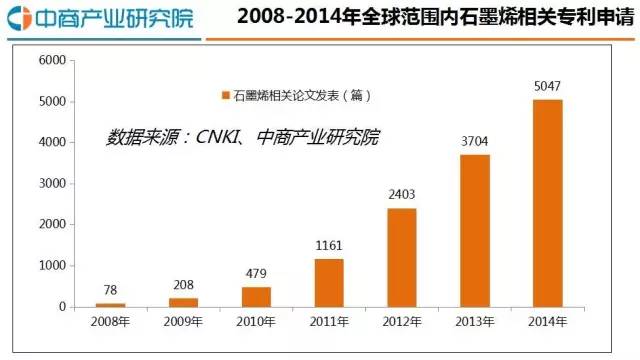 二、石墨烯的技術(shù)研究進(jìn)入快速發(fā)展軌道 從石墨烯相關(guān)專利申請(qǐng)趨勢(shì)看,其相關(guān)專利的申請(qǐng)?jiān)谏蟼(gè)世紀(jì)末就已出現(xiàn),但隨后發(fā)展較為緩慢。直到2008年后,專利申請(qǐng)數(shù)量才開始出現(xiàn)實(shí)質(zhì)性的大幅增長。特別是在安德烈·K·海姆教授和科斯佳·諾沃謝洛夫研究員因?qū)κ┑难芯抗餐@得2010年諾貝爾物理學(xué)獎(jiǎng)以后,全球石墨烯專利申請(qǐng)數(shù)量開始急劇增長,其中,2014年全球石墨烯相關(guān)專利的申請(qǐng)數(shù)量就高達(dá)5047件,表明石墨烯的相關(guān)技術(shù)研究進(jìn)入快速發(fā)展軌道。
