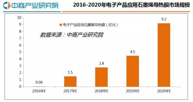 3、散熱材料:石墨烯散熱材料在消費(fèi)電子領(lǐng)域快速發(fā)展 電子和光子器件的散熱是影響電子技術(shù)發(fā)展的主要問題,手機(jī)、電腦、微型電路等設(shè)備的散熱主要通過各類散熱片來解決。目前,市場(chǎng)中的電子產(chǎn)品的散熱片主要是石墨散熱片。但是,石墨烯導(dǎo)熱片的導(dǎo)熱快、可折疊等性能要遠(yuǎn)遠(yuǎn)優(yōu)于石墨片,極佳的散熱材料如熱導(dǎo)纖維、熱導(dǎo)塑料等,并且技術(shù)難度小、工藝相對(duì)成熟,存在快速進(jìn)入市場(chǎng)的機(jī)會(huì)。尤其在智能手機(jī)領(lǐng)域,手機(jī)要求輕薄、便攜,未來要求可折疊,因此石墨烯導(dǎo)熱膜具有極大優(yōu)勢(shì)。預(yù)估未來采用石墨烯散熱膜進(jìn)行散熱的散熱組件占總電子產(chǎn)品及LED產(chǎn)品市場(chǎng)的10%,即可為石墨烯散熱膜帶來15-20億左右的市場(chǎng)空間。