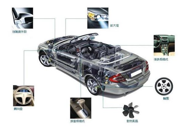 目前汽車零部件早已使用了大量塑料零部件,包括保險(xiǎn)杠、輪罩、牌照板、儀表盤、門板、旋鈕,甚至發(fā)動(dòng)機(jī)罩、進(jìn)氣系統(tǒng)等。專家指出,聚酰胺(PA,即尼龍)材料主要應(yīng)用于動(dòng)力、底盤零部件及結(jié)構(gòu)件,約占整車塑料的20%;聚碳酸酯、聚甲醛改性聚苯醚和熱塑性聚酯等材料主要應(yīng)用于電子電器零部件及結(jié)構(gòu)件,約占整車塑料的15%左右;改性聚苯醚(PP)和abs工程塑料及其合金材料主要應(yīng)用于內(nèi)外飾零部件,隨著車型檔次提高,工程塑料應(yīng)用增加,abs及其合金應(yīng)用比例增加。