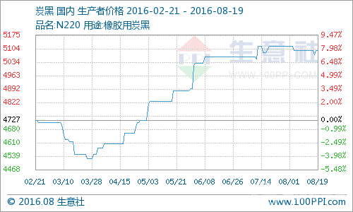 根據(jù)生意社數(shù)據(jù)監(jiān)測(cè)顯示炭黑N220型號(hào)價(jià)格走勢(shì)如下: