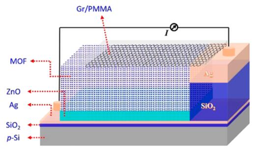 MOF是一種非常有前途的材料,它是由金屬離子和有機(jī)材料配合形成的。在過去的20年中,廣泛應(yīng)用做化學(xué)分離器、藥物輸送、氣體儲(chǔ)存、催化等領(lǐng)域。而在光電領(lǐng)域卻極難見到這個(gè)材料,因?yàn)镸OF一般多孔、導(dǎo)電性差。