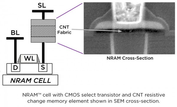 不過(guò)話說(shuō)回來(lái),NRAM還是新技術(shù),Nantero公司從2006年就說(shuō)生產(chǎn)碳納米管內(nèi)存了,但是一直沒(méi)什么進(jìn)展。即便是跟富士通達(dá)成合作了,量產(chǎn)的NRAM芯片還是256Gb(32MB)大小的,容量還是太小了,只適合一些嵌入式領(lǐng)域。