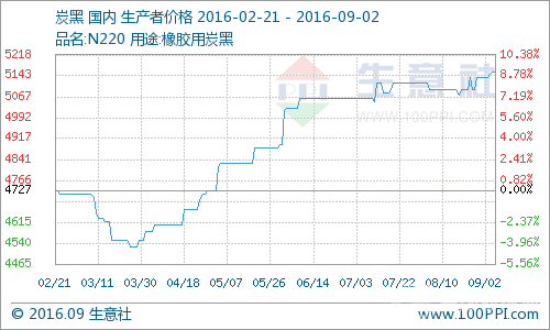 根據(jù)生意社數(shù)據(jù)監(jiān)測顯示炭黑N220型號價格走勢如下: