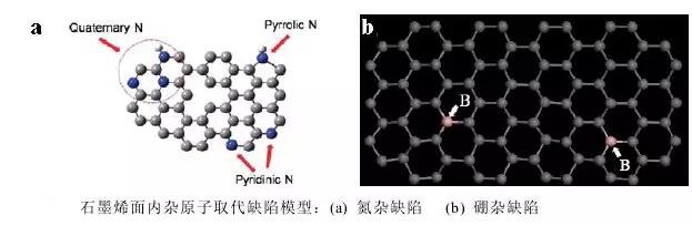 面內(nèi)雜原子取代缺陷:一些原子如氮、硼等,可以形成三個化學(xué)鍵,因此可以取代石墨烯中碳原子的位置,這些雜原子構(gòu)成了石墨烯面內(nèi)雜原子取代缺陷。