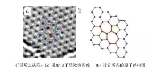 第一類缺陷為本征缺陷,由石墨烯上非 sp2軌道雜化的碳原子組成,這些碳原子軌道雜化形式的變化,通常是因為本身所在的,或者周圍的碳六元環(huán)中缺少或者多出碳原子所導(dǎo)致,因此這種石墨烯片在原子分辨率下通?梢杂^察到明顯的非六元碳環(huán)甚至點域或者線域的空洞;