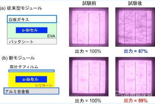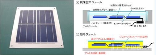 由產(chǎn)綜研光伏發(fā)電研究中心模塊可靠性小組高級(jí)主任研究員原浩二郎等,與信越化學(xué)工業(yè)共同開發(fā)。是采用以硅橡膠制成的片狀新材料封裝而實(shí)現(xiàn)的。