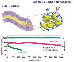 近期,中國(guó)科學(xué)院化學(xué)研究所郭玉國(guó)教授課題組開(kāi)發(fā)出一種獨(dú)特的石墨化碳納米籠結(jié)構(gòu)的sp2型碳材料,并將其作為硫載體,應(yīng)用在高倍率長(zhǎng)壽命鋰硫電池。該碳材料具有三維夾層結(jié)構(gòu),由石墨烯作為骨架,周?chē)瞫p2型碳層,碳層中嵌有石墨化碳納米籠結(jié)構(gòu)單元。該石墨化碳納米籠由幾層石墨化sp2碳包圍形成,內(nèi)部空腔直徑約為3~5 nm。采用溶液法將納米硫負(fù)載入石墨化碳籠單元內(nèi)。