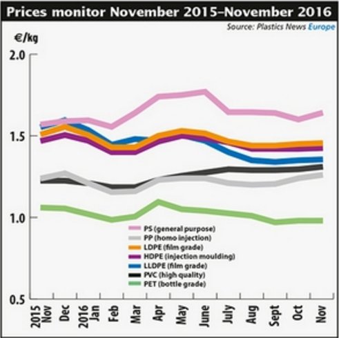 低密度聚乙烯的價(jià)格大約增長(zhǎng)了15歐元/噸,線性低密度聚乙烯的價(jià)格到11月中旬增長(zhǎng)了5歐元/噸。