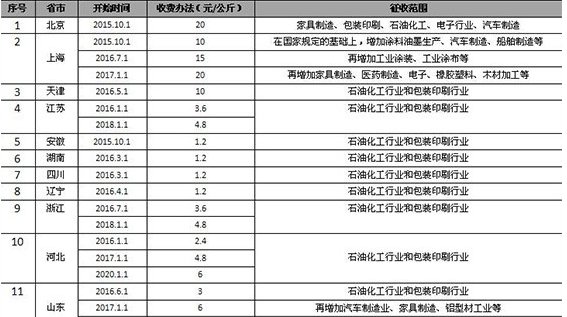地方政府陸續(xù)出臺VOCs排污收費(fèi)實(shí)施辦法