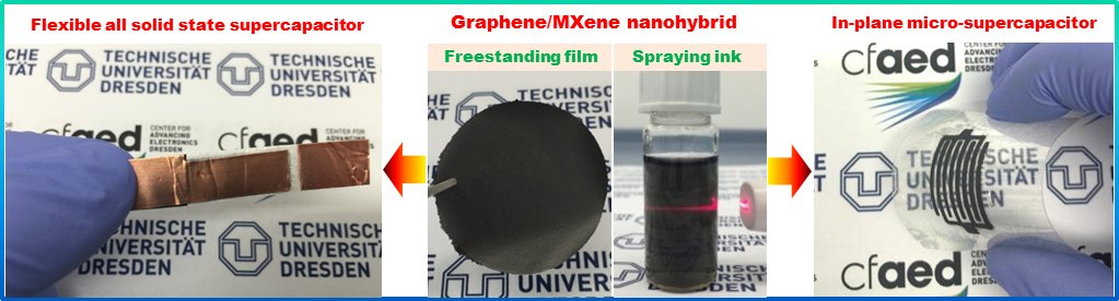 德累斯頓工業(yè)大學(xué)馮新亮教授,莊小東博士和中國科學(xué)院長春應(yīng)用化學(xué)研究所牛利研究員(共同通訊作者)以此為著眼點,合作制備了基于MXene和電化學(xué)剝離的石墨烯納米復(fù)合物薄膜電極,并將其應(yīng)用到傳統(tǒng)的固態(tài)超級電容器和平面的微型超級電容器中。
