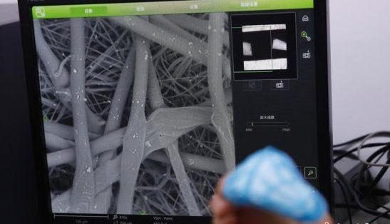 北京化工大學的副教授、博士生導師劉勇介紹說,實驗采用的樣本是使用10天左右的防霾鼻罩的濾芯,通過掃描電子顯微鏡放大2000倍左右,能清晰地看到附著在濾芯材料纖維上的微米級大小的霧霾顆粒。
