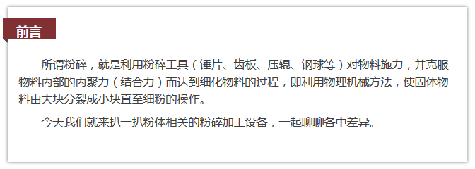 [導讀]  所謂粉碎,就是利用粉碎工具(錘片、齒板、壓輥、鋼球等)對物料施力,并克服物料內(nèi)部的內(nèi)聚力(結(jié)合力)而達到細化物料的過程,即利用物理機械方法,使固體物料由大塊分裂成小塊直至細粉的操作。