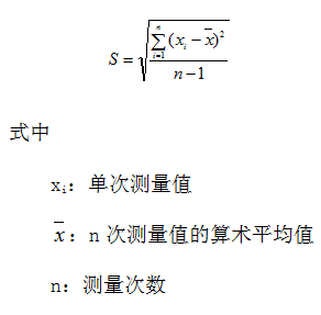 2) 重復(fù)性(又稱精度Precision),是指多次重復(fù)測(cè)量同一量值時(shí)各次測(cè)定值之間彼此相互一致的程度,統(tǒng)計(jì)上即是指n次測(cè)量中平均到每一次測(cè)量上的標(biāo)準(zhǔn)偏差: