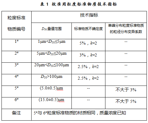 1.校準(zhǔn)用粒度標(biāo)準(zhǔn)物質(zhì)的技術(shù)指標(biāo)